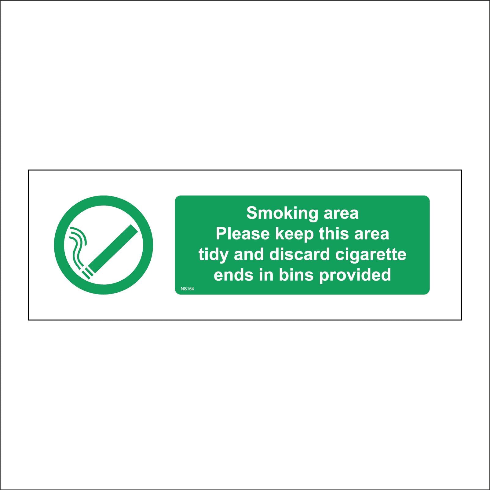 NS154 Smoking Area Please Keep Tidy Discard Cigarette Ends Bins