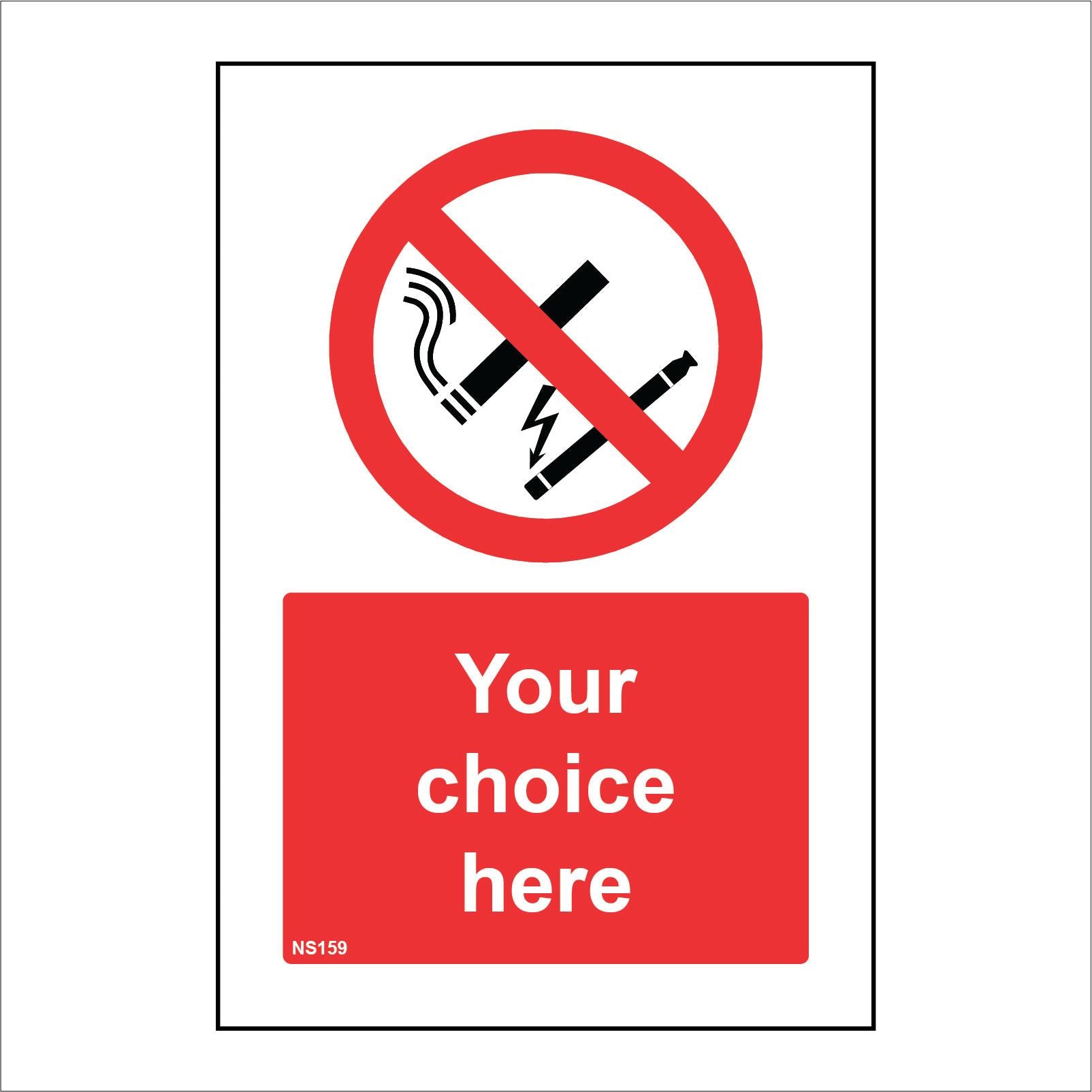 The NS159 No Smoking Vaping Your Choice Here Custom Personalise is part of our No Smoking Sign Range.