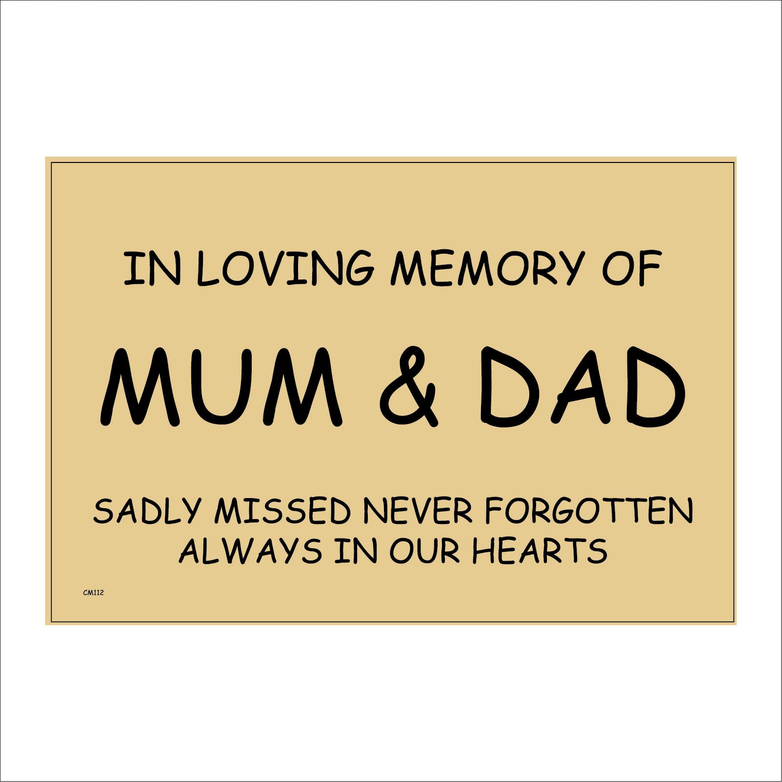 CM112 In Loving Memory Sadly Missed Never Forgotten Always In Our Hearts Sign