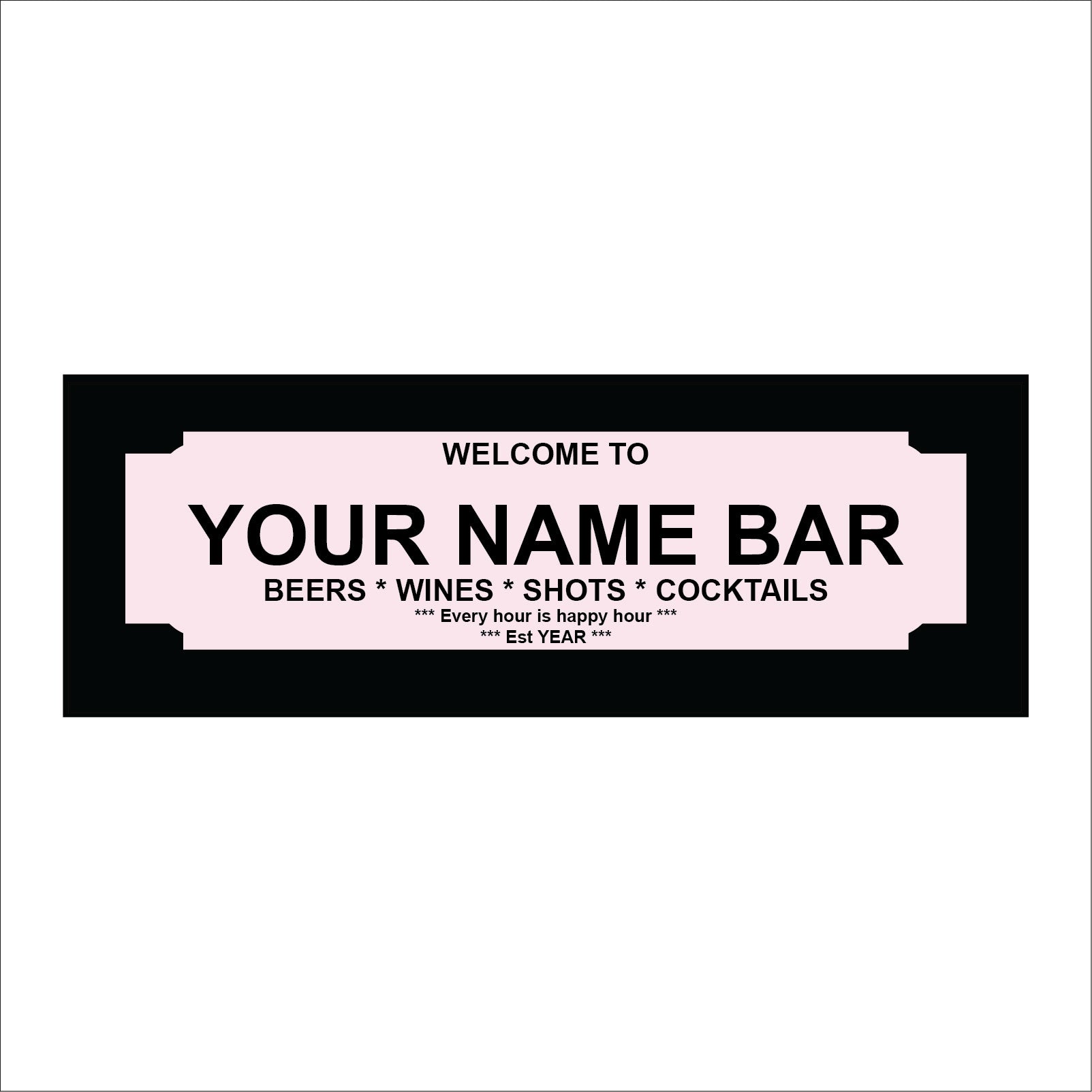 | Supplied in: Single | Text of sign: Welcome To Your Name Bar Beers Wines Shots Cocktails | |