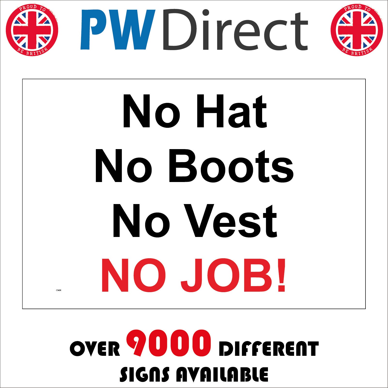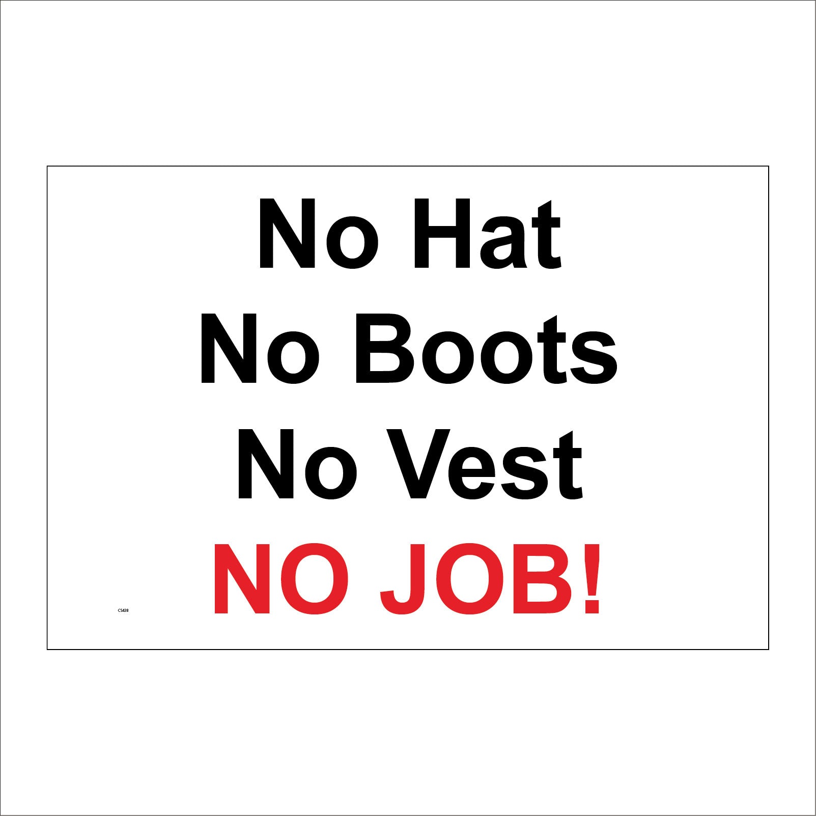 The CS438 No Hat No Boots No Vest No Job Site Safety Equipment Gear is part of our Construction Sign Range.