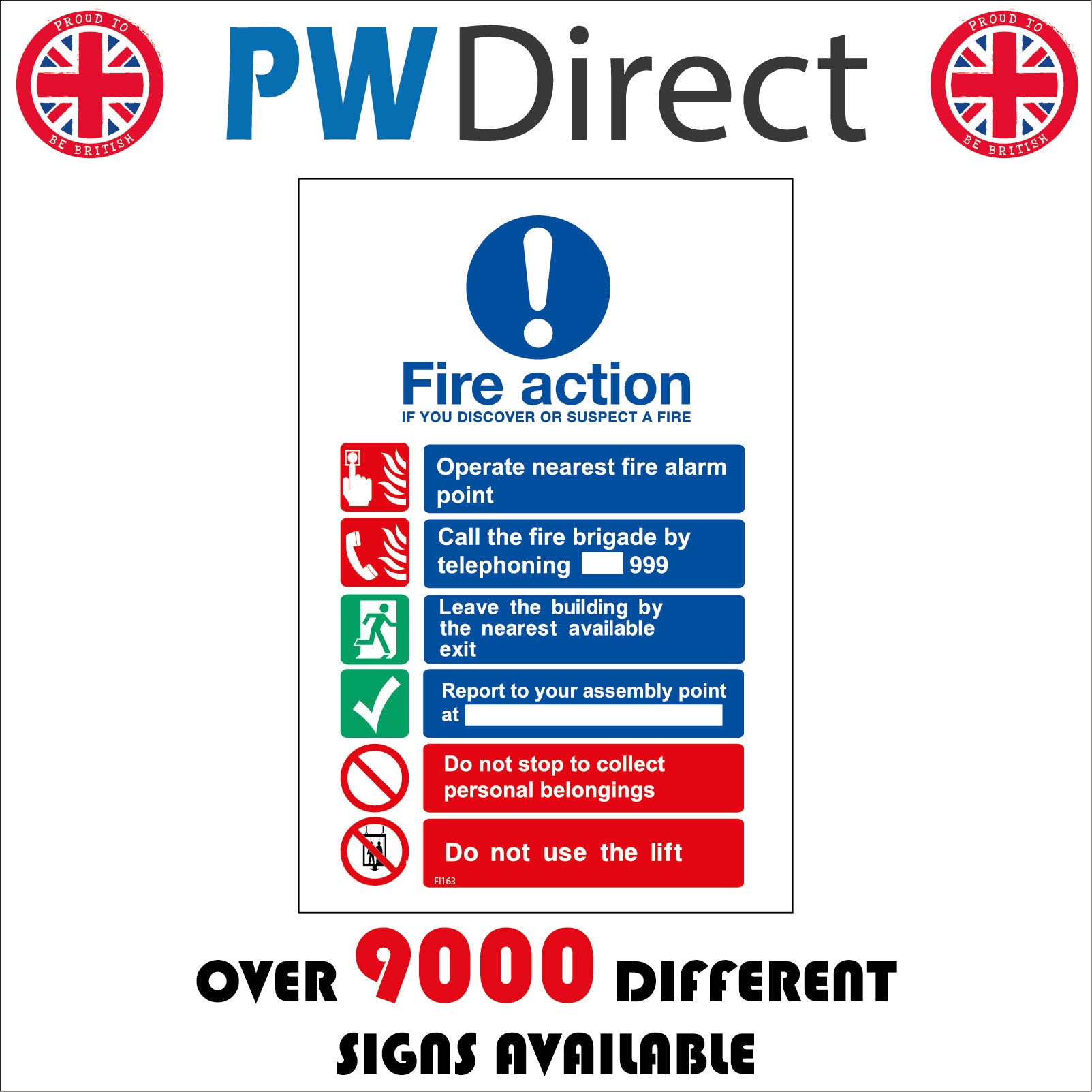 The FI163 Fire Action If You Discover Or Suspect A Fire. Operate Nearest Fire Alarm Point Sign with Circle Exclamation Mark Hand Fire,People Phone is part of our Fire Sign Range.