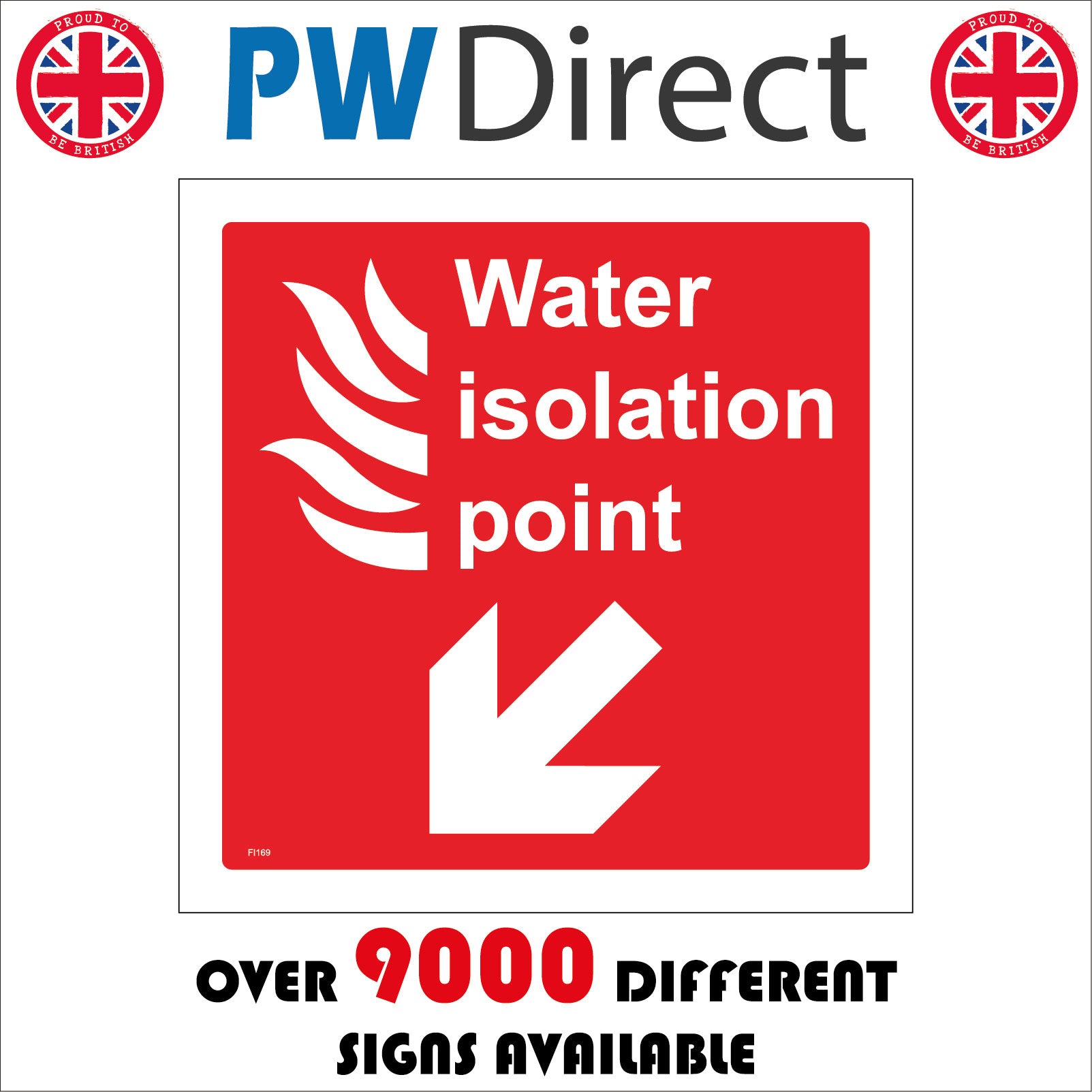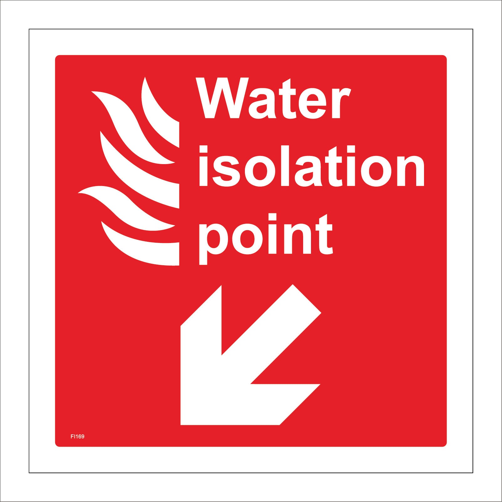 The FI169 Water Isolation Point Sign with Fire Arrow Pointing Down To The Left is part of our Fire Sign Range.