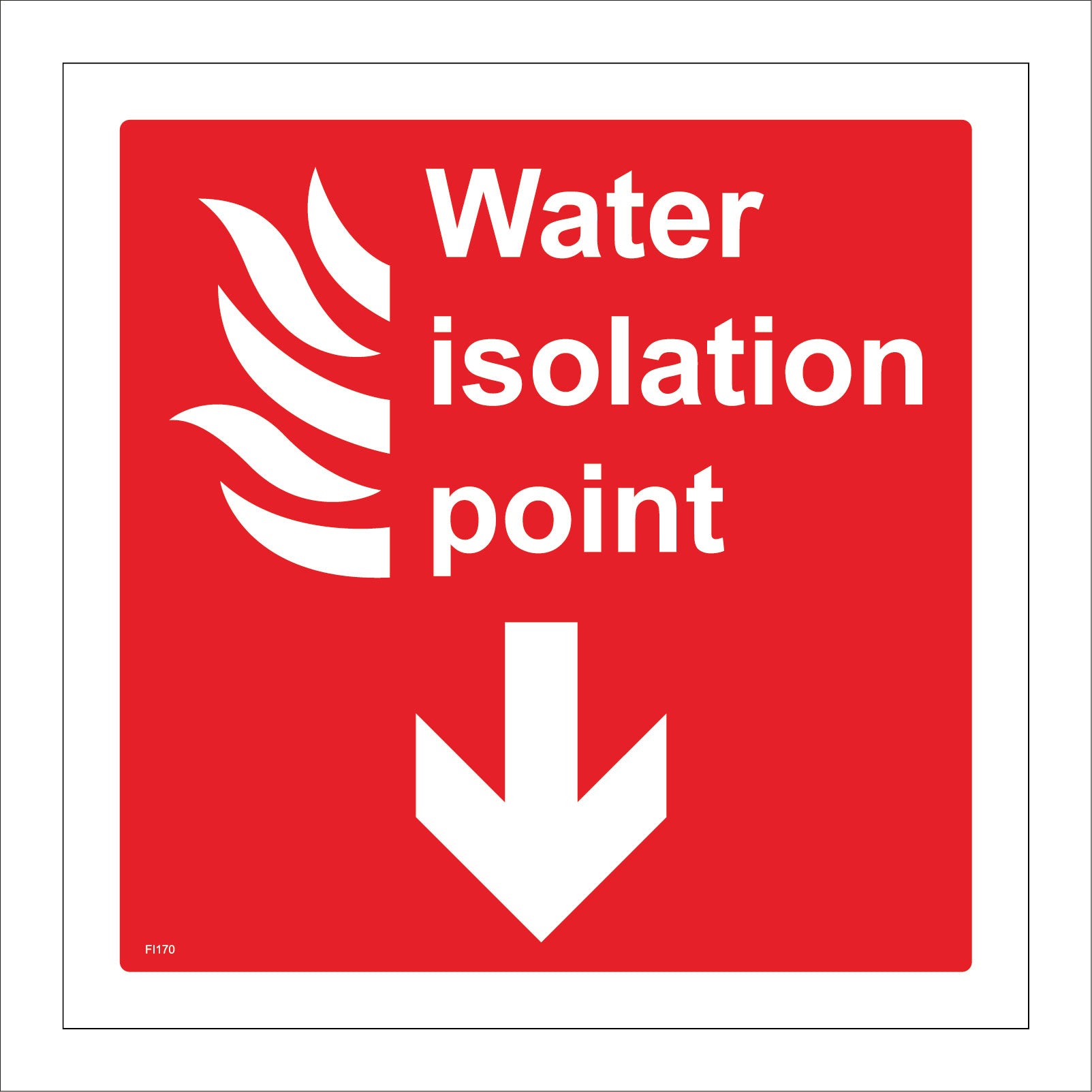 The FI170 Water Isolation Point Sign with Fire Arrow Pointing Down is part of our Fire Sign Range.