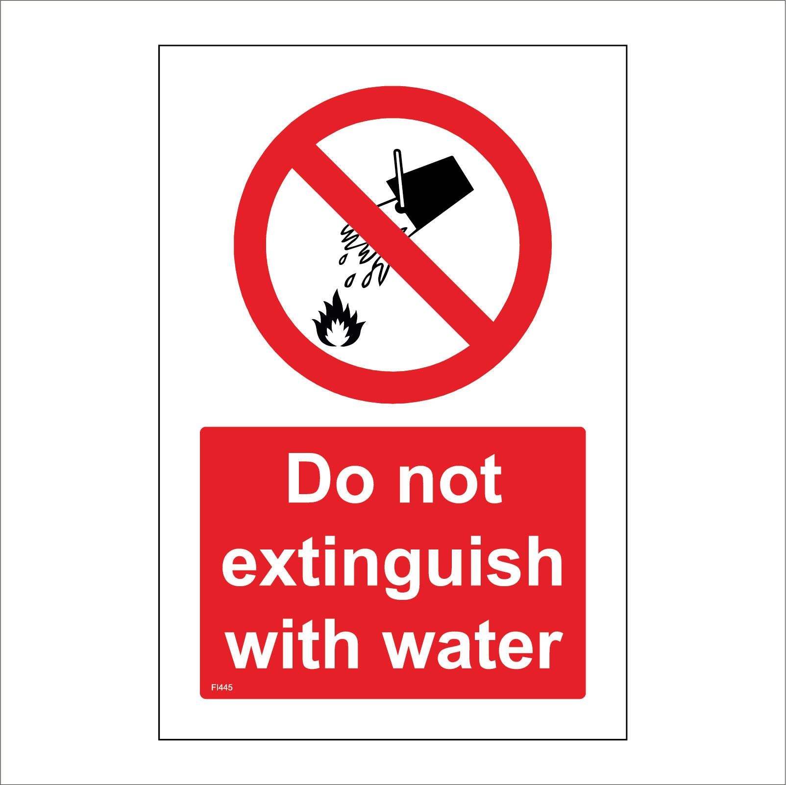 The FI445 Do Not Extinguish With Water is part of our Fire Sign Range.