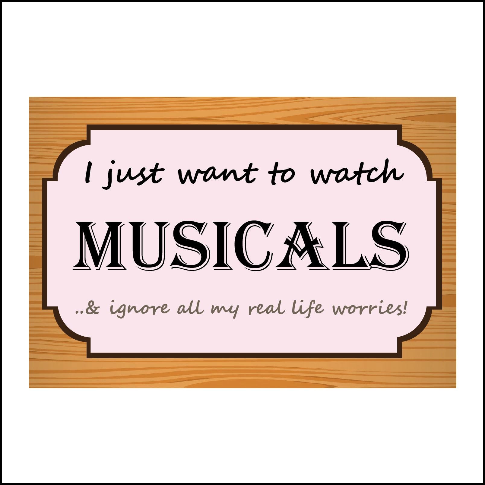 IN149 I Just Want To Watch Musicals Ignore Life Worries Sign