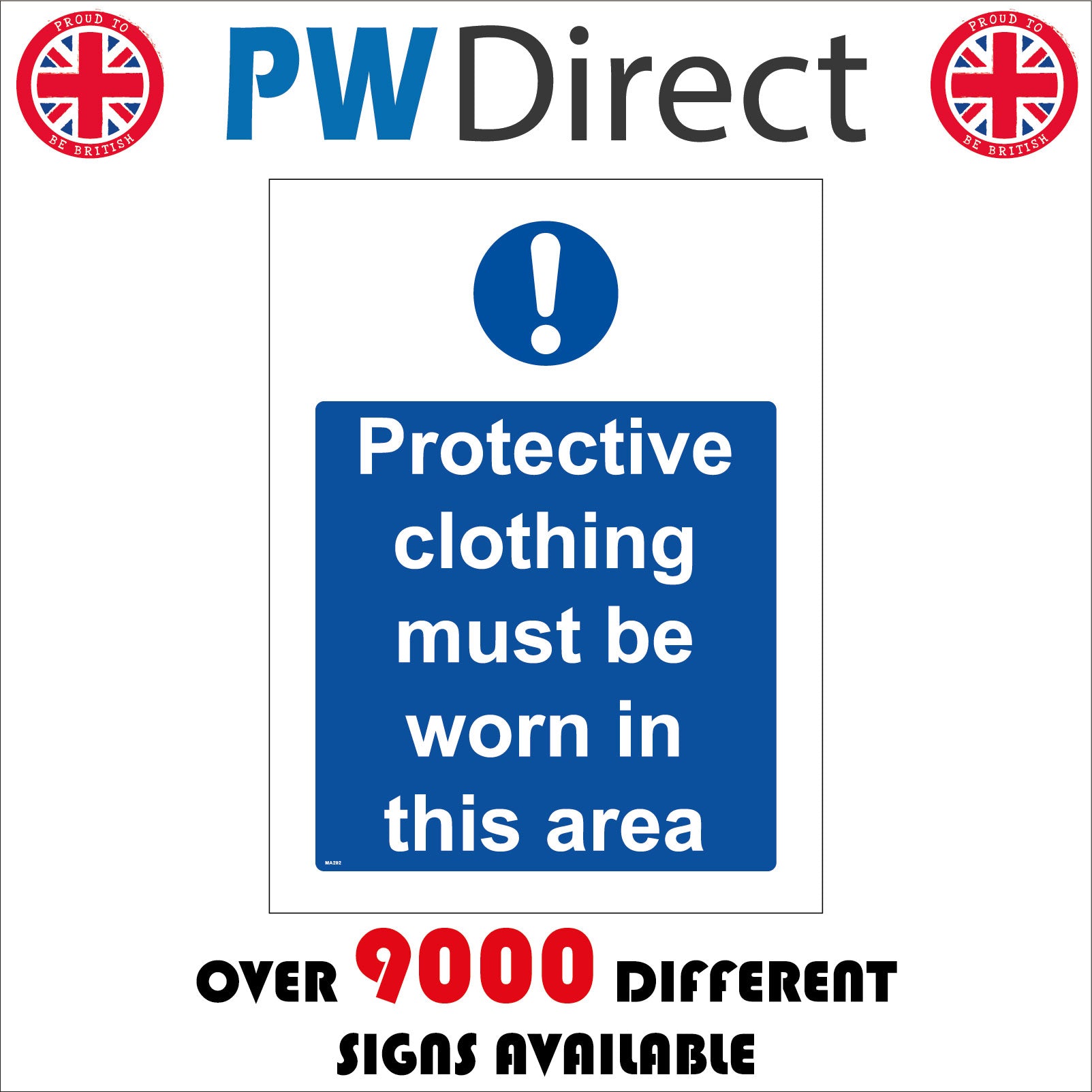 MA292 Protective Clothing Must Be Worn In This Area Sign with Exclamation Mark