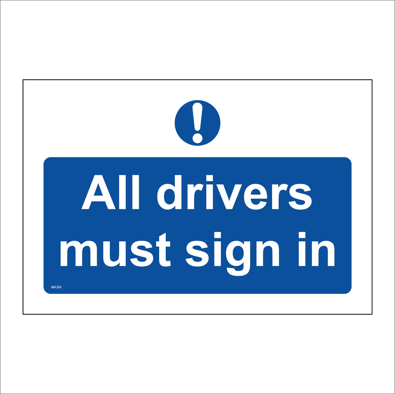 The MA366 All Drivers Must Sign In Sign with Circle Exclamation Mark is part of our Mandatory Sign Range.