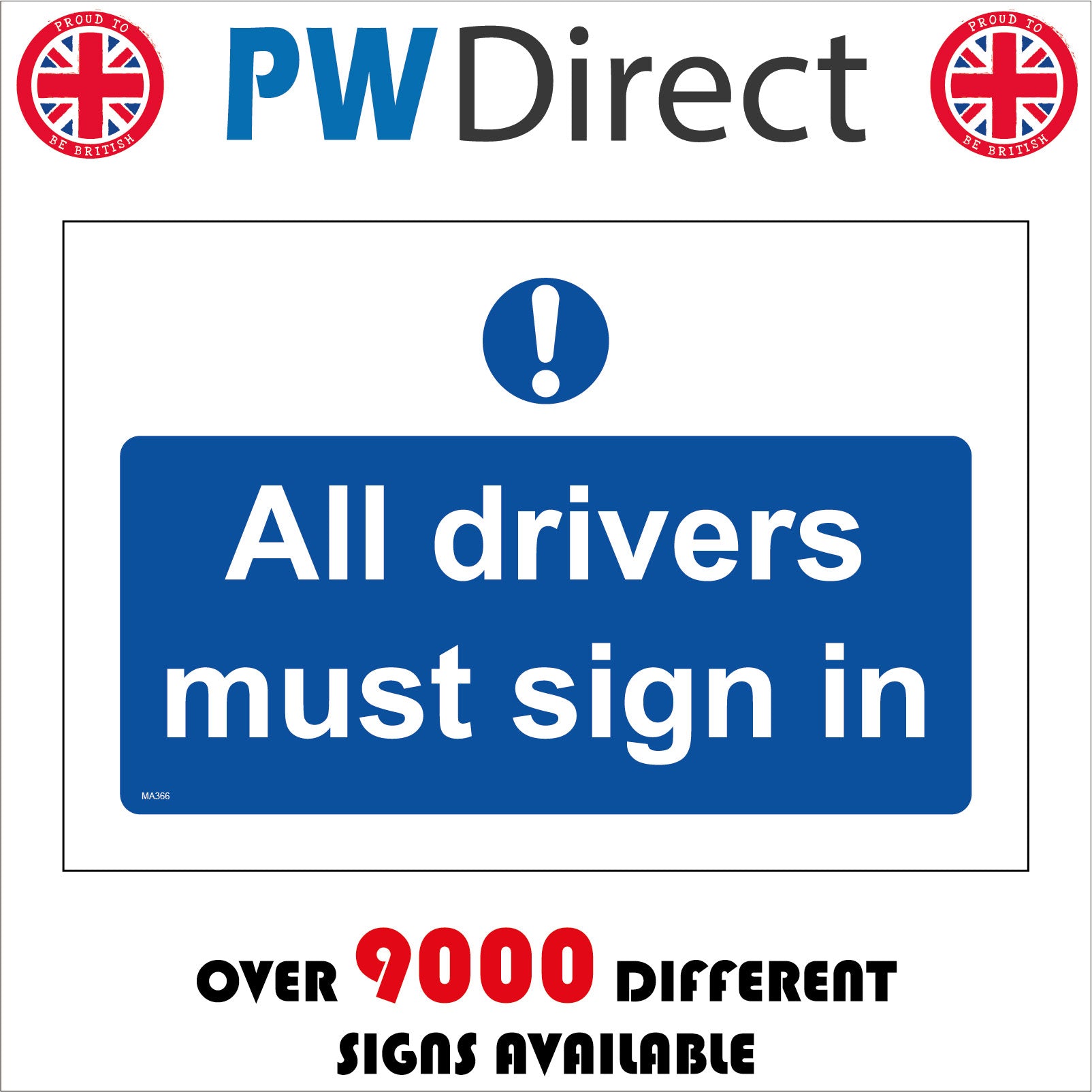 MA366 All Drivers Must Sign In Sign with Circle Exclamation Mark