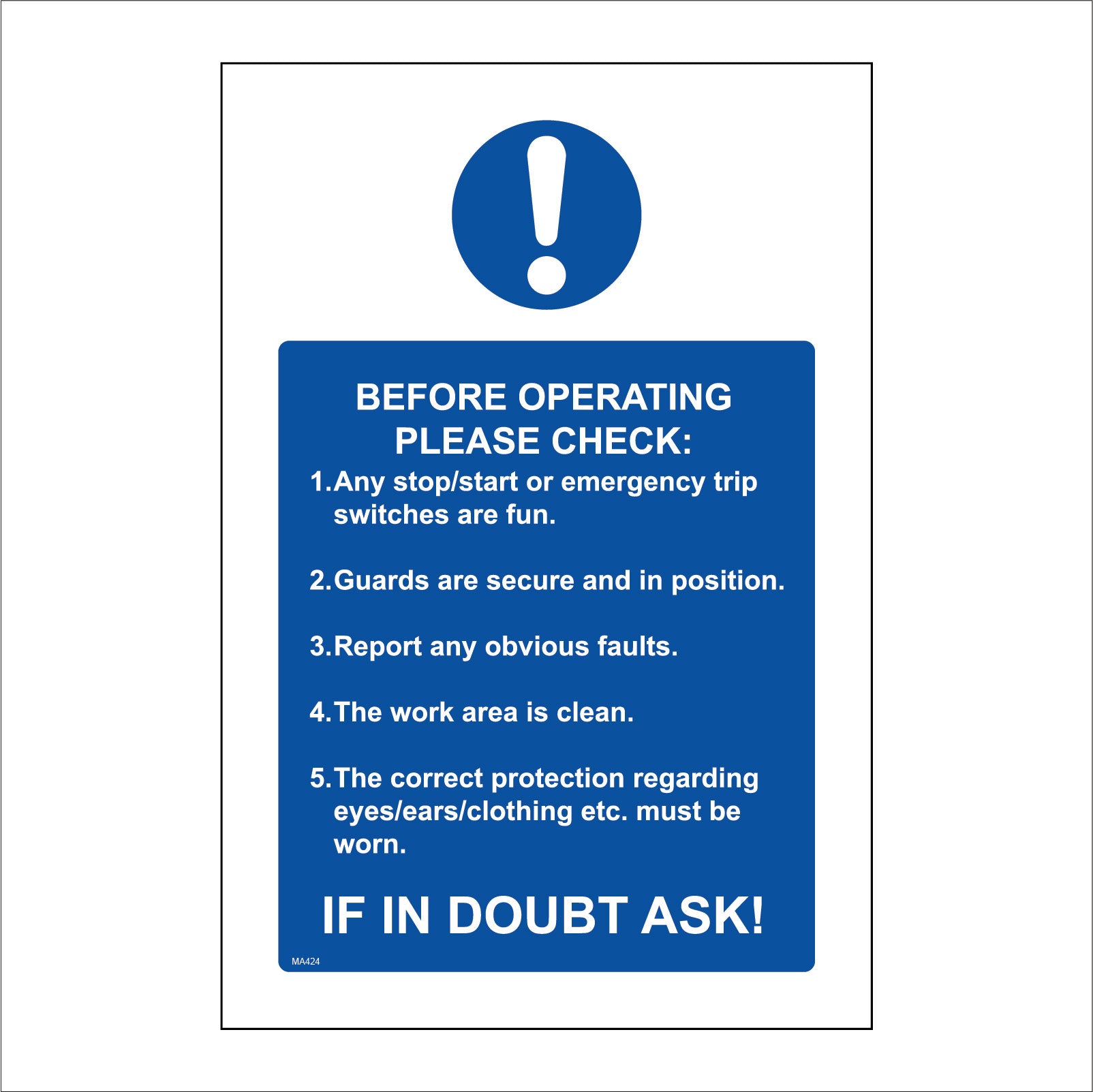 MA424 Before Operating Please Check Sign with Circle Exclamation Mark
