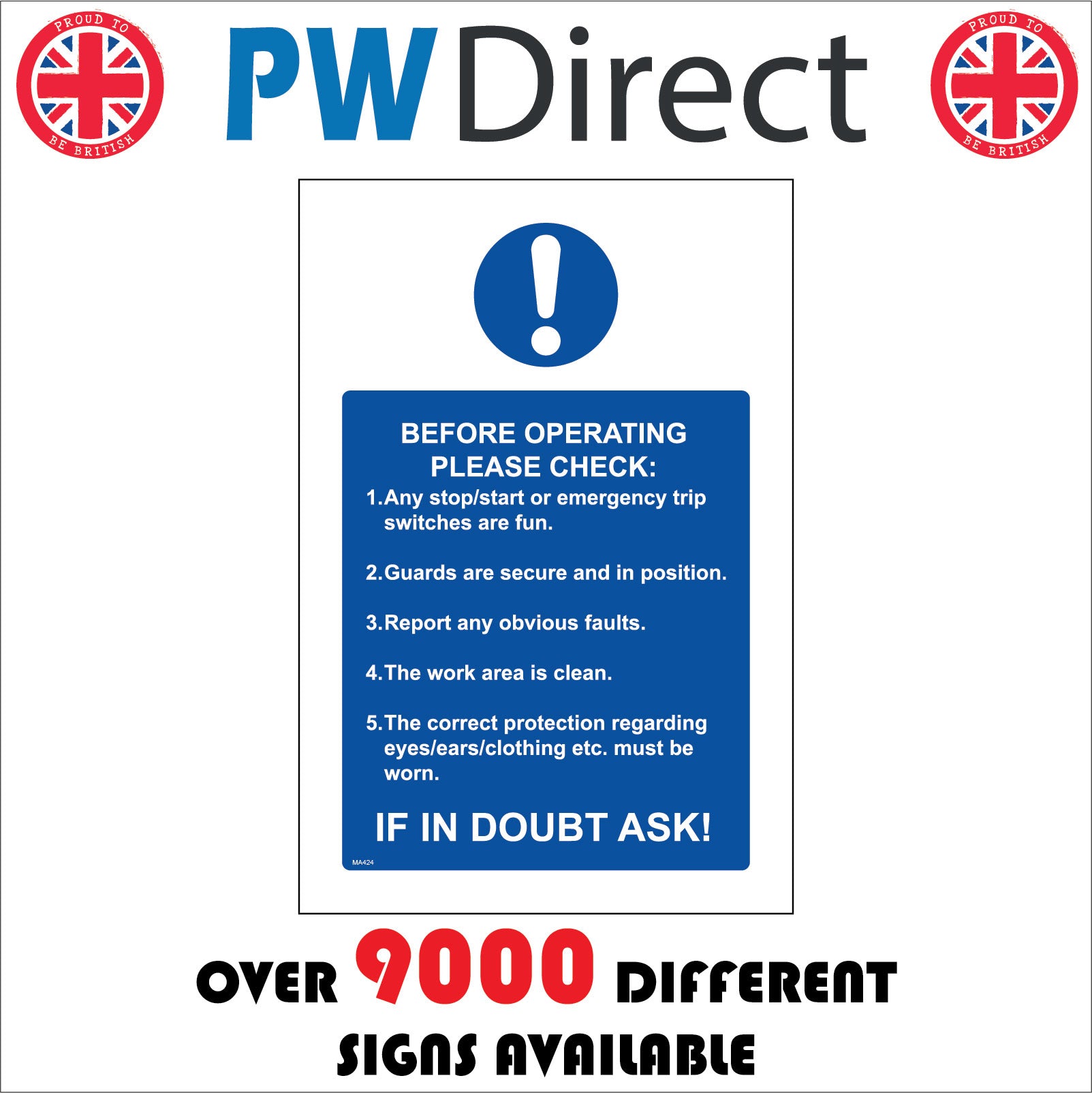 The MA424 Before Operating Please Check Sign with Circle Exclamation Mark is part of our Mandatory Sign Range.