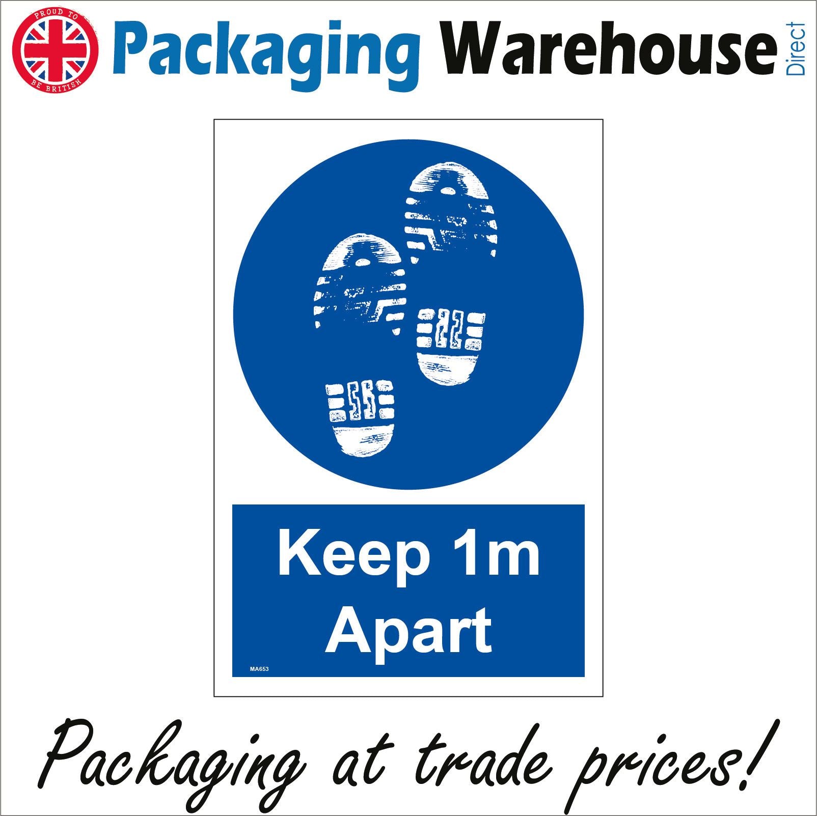 The MA653 Keep 1m Apart Sign with Shoes is part of our Mandatory Sign Range.