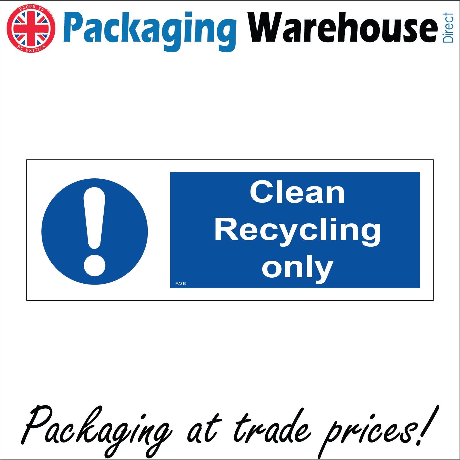 The format of the standard MA719 sign is Long Landscape and displays a White Circle Exclamation Mark/Clean Recycling Only text on a Blue Background.