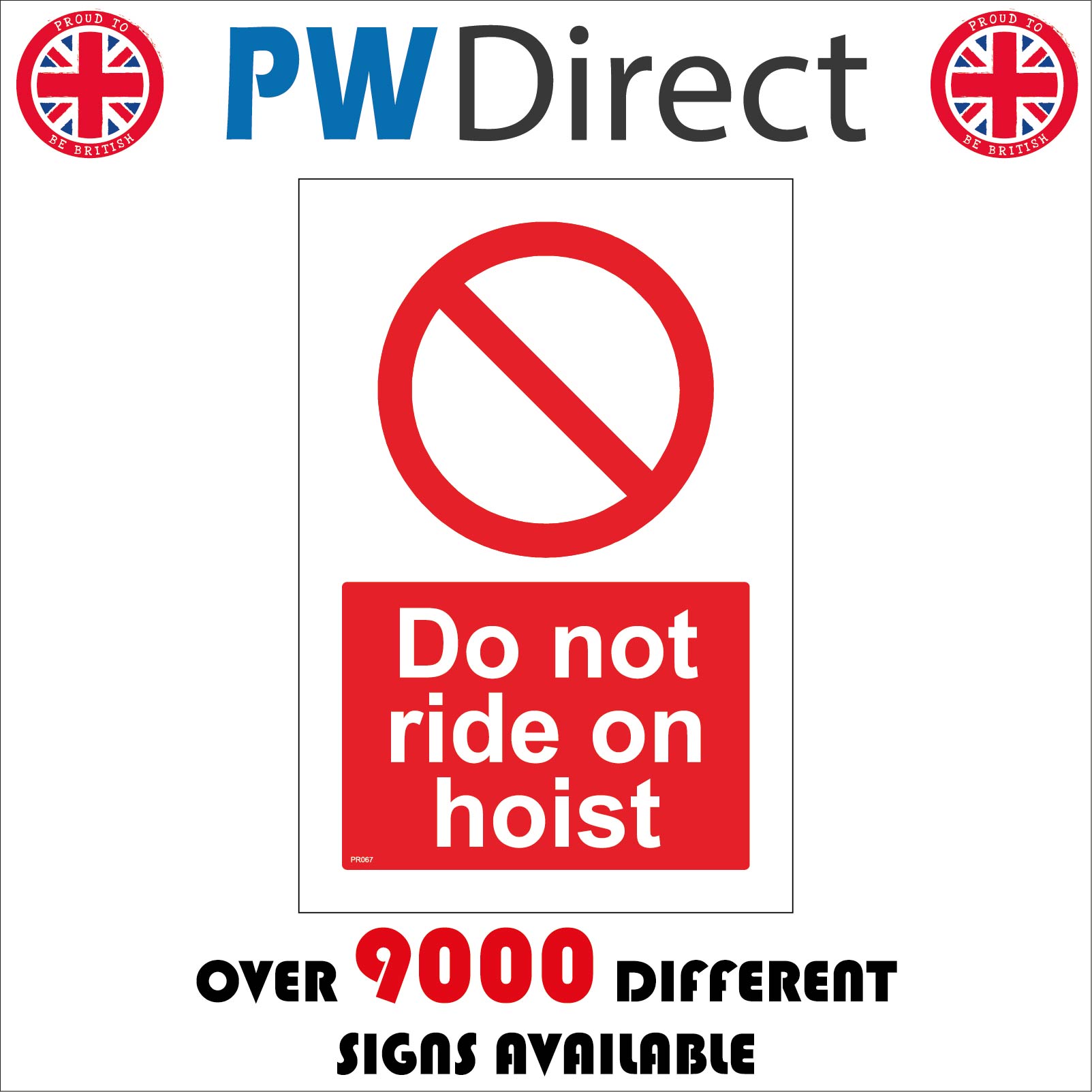 The format of the standard PR067 sign is Billboard Portrait and displays a White/Red Circle/Do Not Ride On Hoist text on a White/Red Background.
