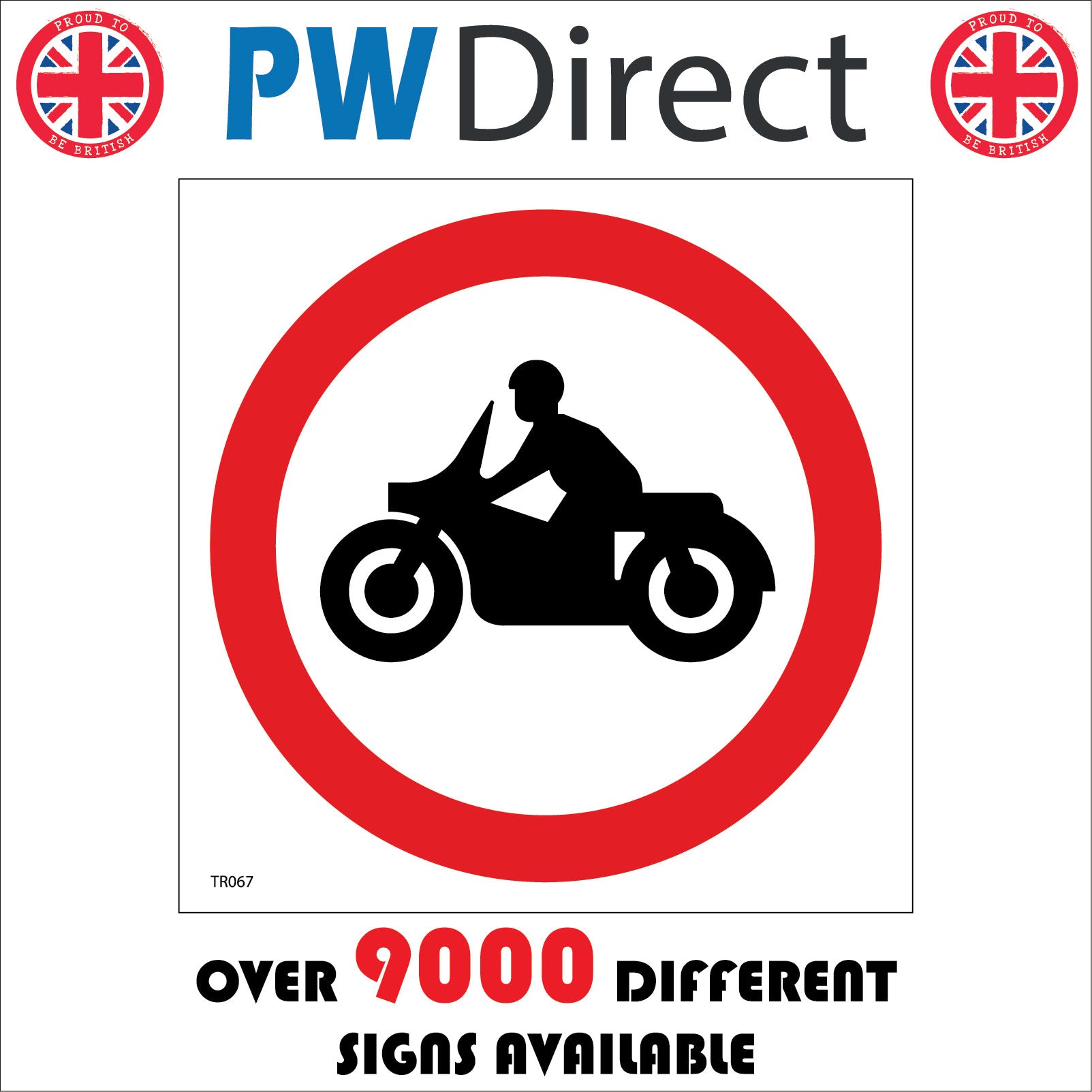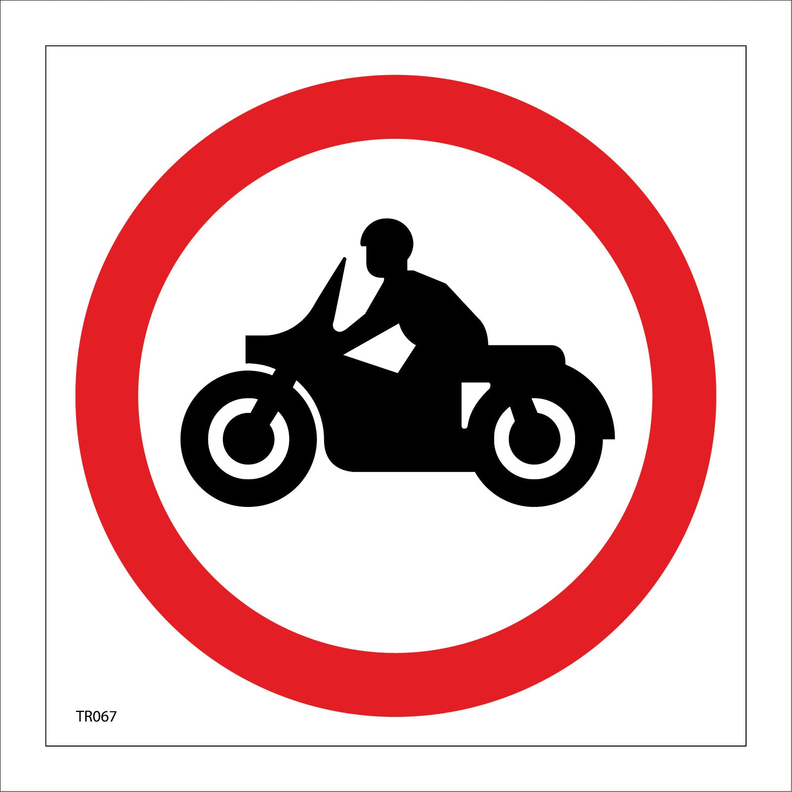The format of the standard TR067 sign is Square and displays a Red/Black Motor Bike/No Motor Bikes text on a White Background.