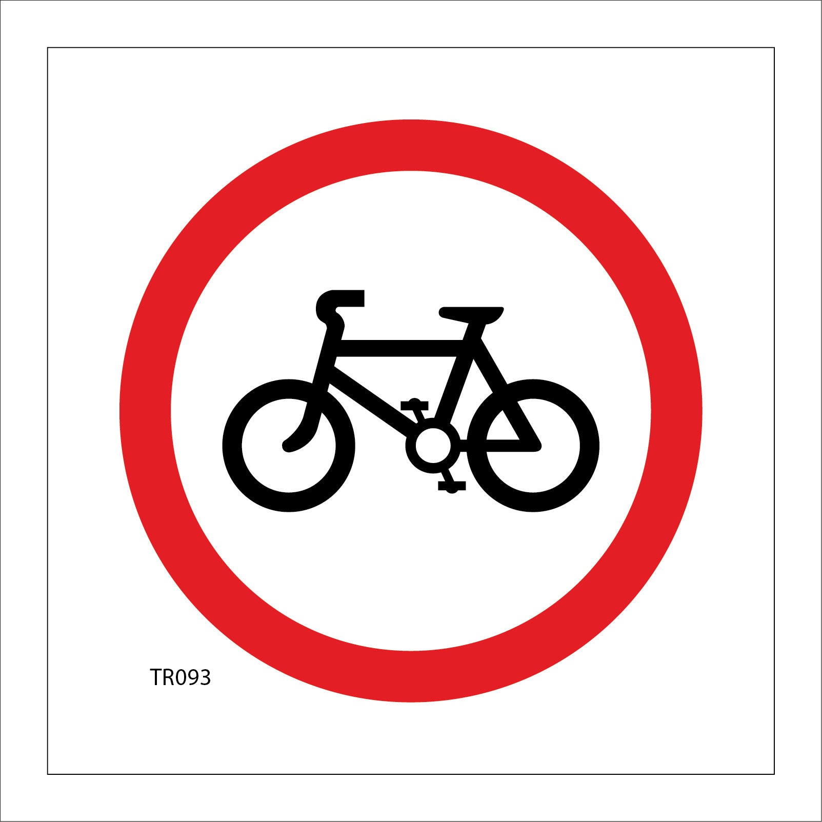 The format of the standard TR093 sign is Square and displays a Red/Black Bike/No Bicycle Bikes text on a White Background.