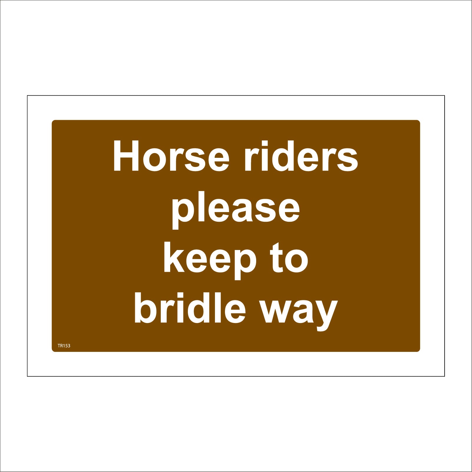 The format of the standard TR153 sign is Billboard Landscape and displays a White -/Horse Riders Please Keep To The Bridle Way text on a Brown Background.
