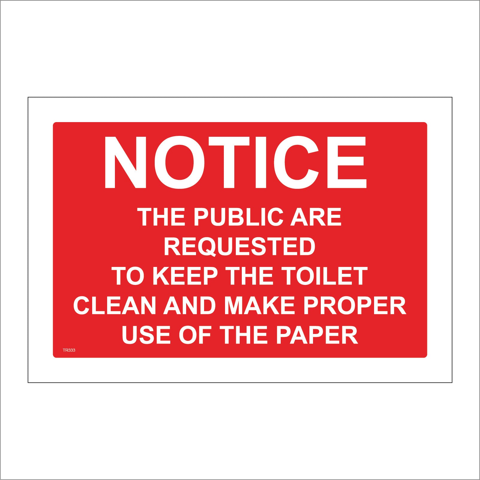 The TR333 Notice The Public Are Requested To Keep The Toilet Clean And Make Proper Use Of The Paper Sign is part of our Traffic Sign Range.