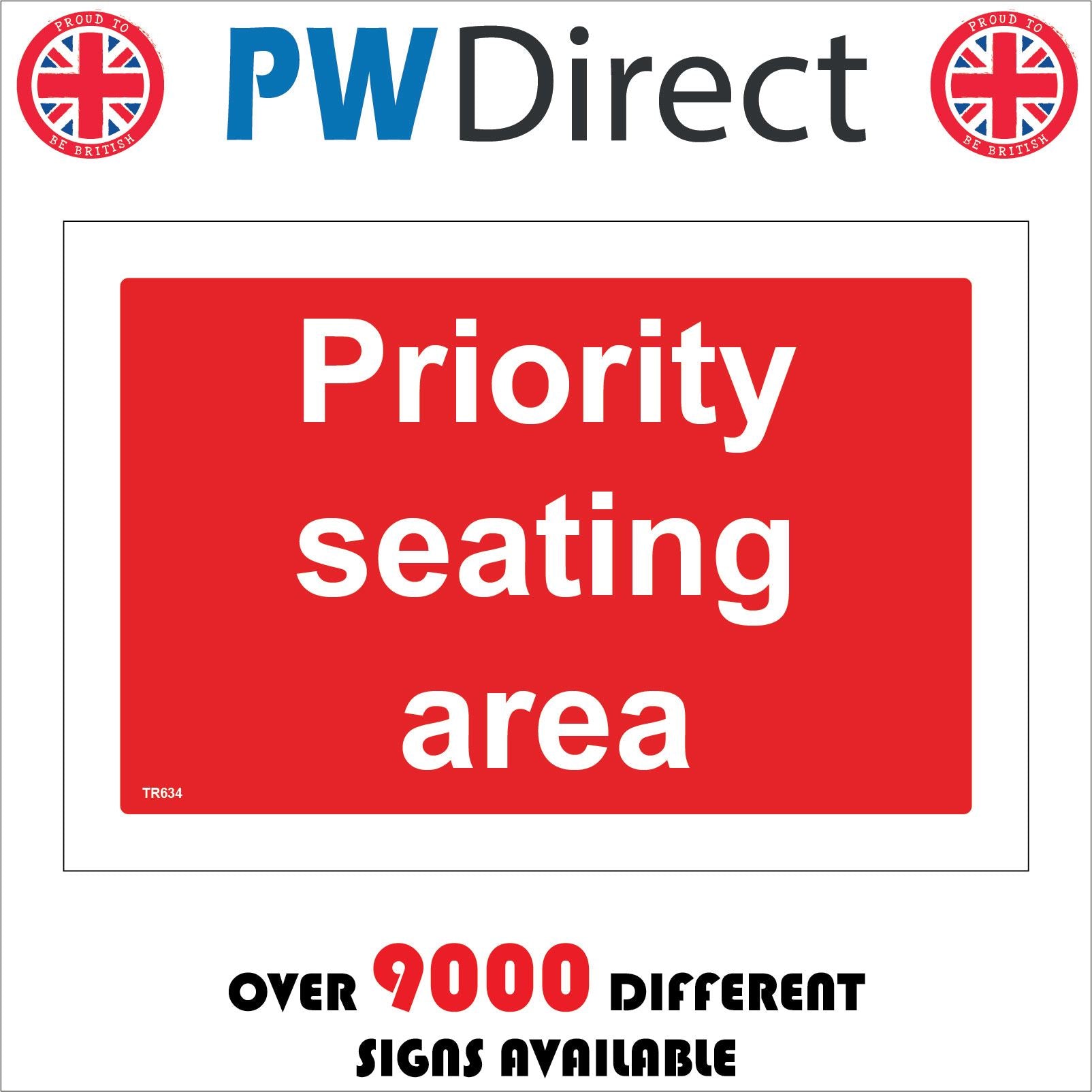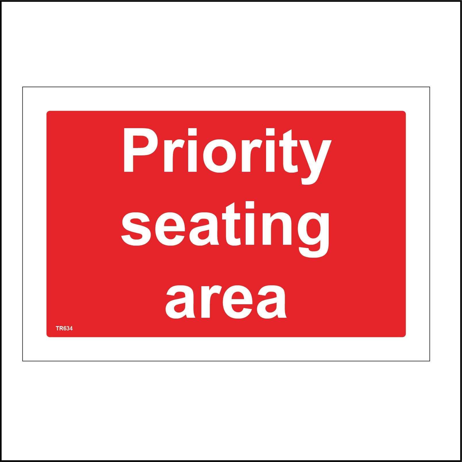 The format of the standard TR634 sign is Billboard Landscape and displays a White /Priority Seating Area Aged Disabled Passengers Wheelchair text on a Red Background.