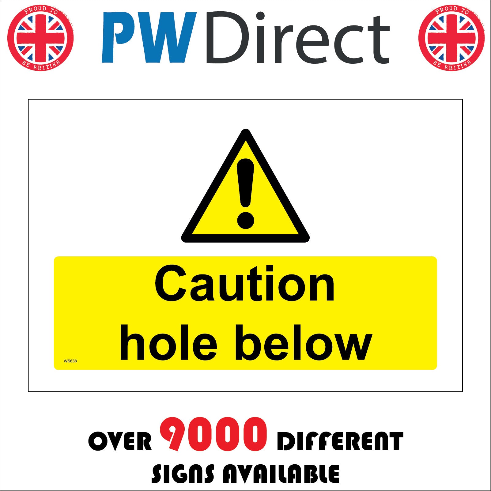 The WS638 Caution Hole Below Sign with Triangle Exclamation Mark is part of our Warning Sign Range.