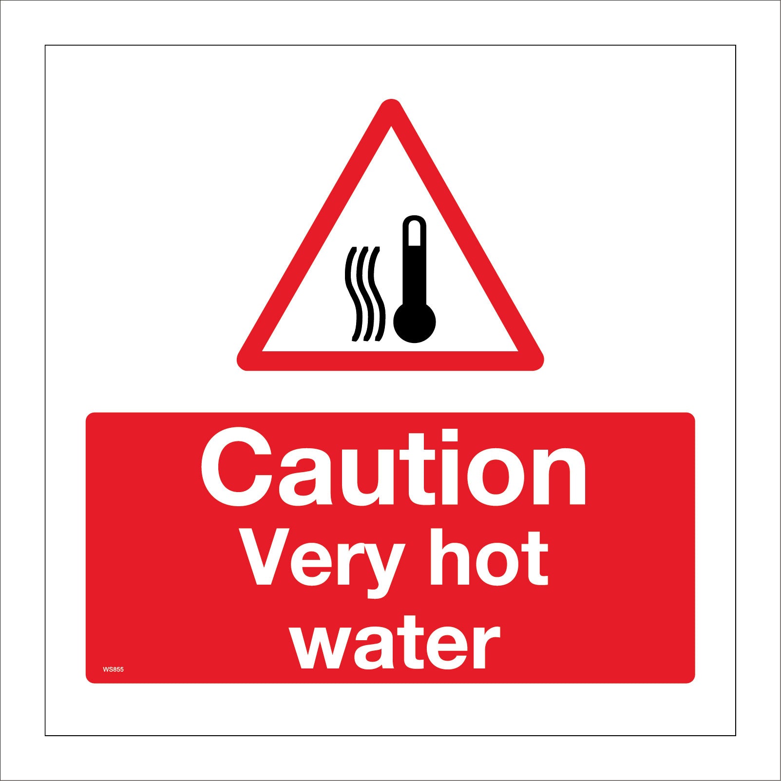 WS855 Caution Very Hot Water Sign with Triangle Thermometer 3 Squiggly Lines
