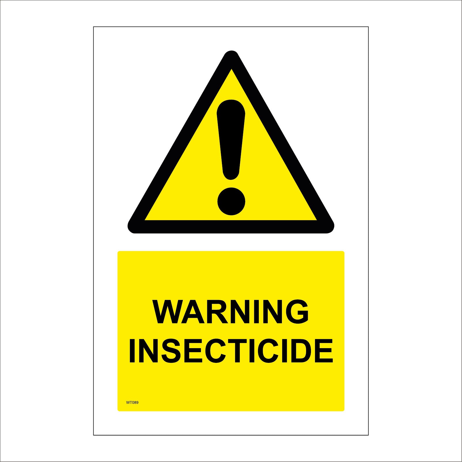 The format of the standard WT089 sign is Billboard Portrait and displays a Black Triangle Exclamation Mark/Warning Insecticide text on a Yellow Background.