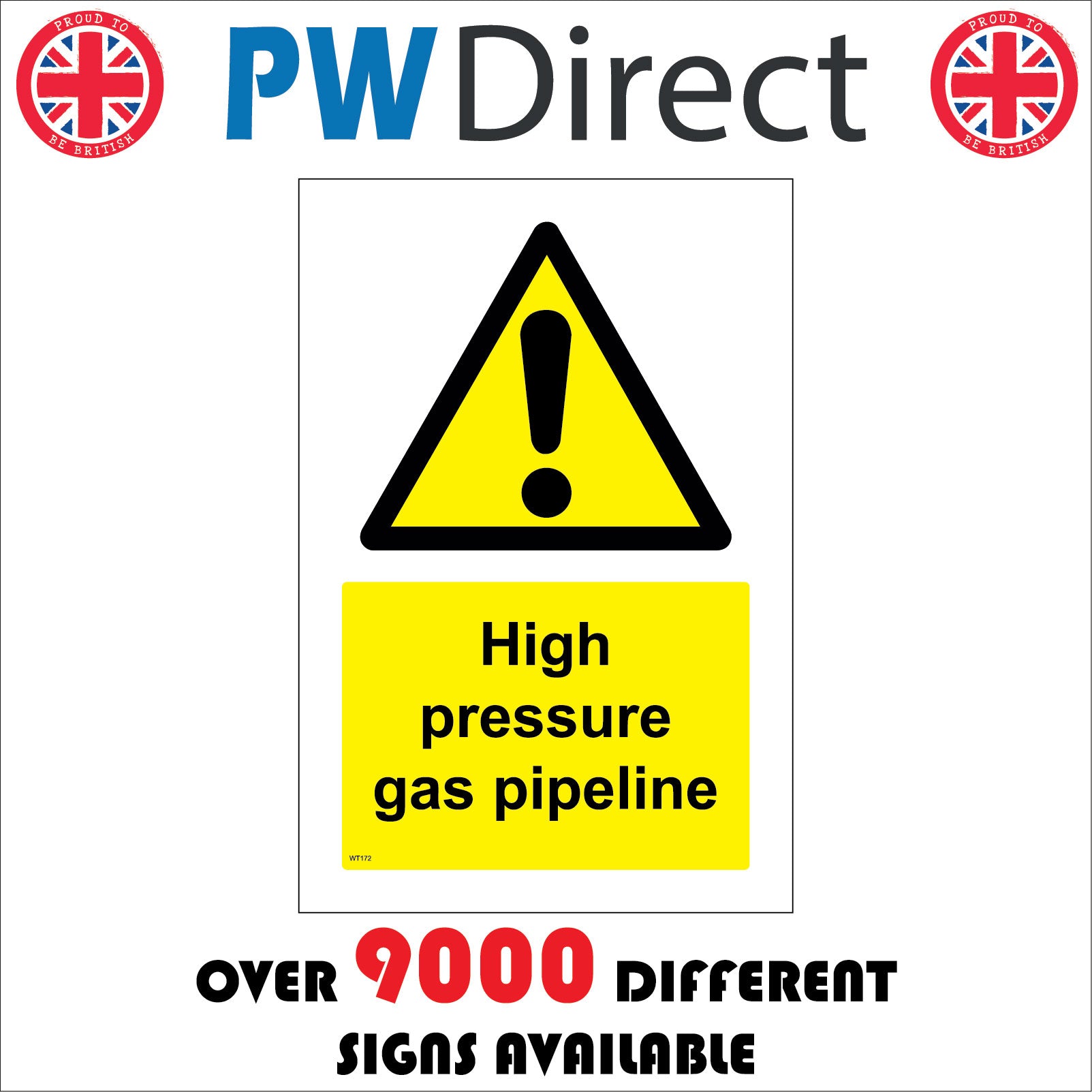 The WT172 High Pressure Gas Pipeline is part of our Warning Sign Range.