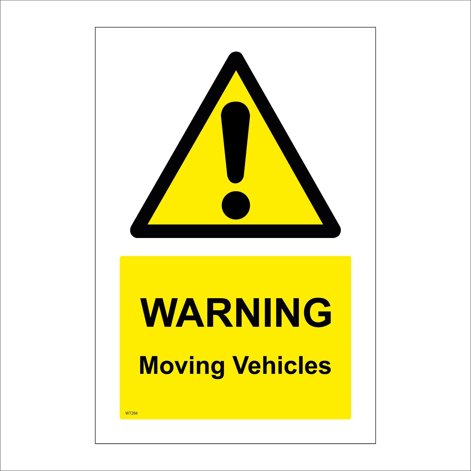 The format of the standard WT284 sign is Billboard Portrait and displays a Black Exclmation Mark/Warning Moving Vehicles text on a Yellow Background.